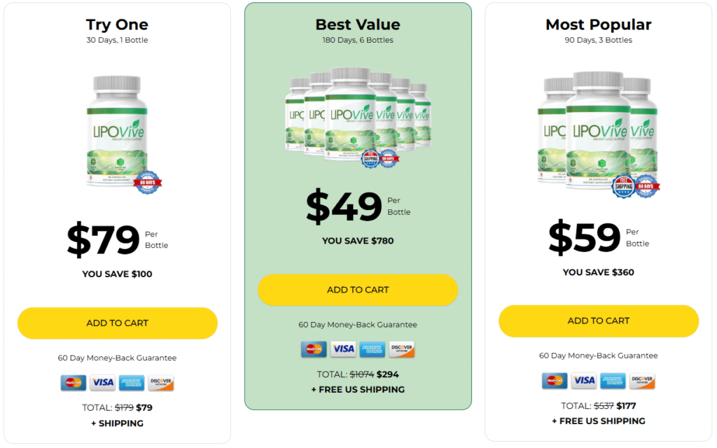 The company offers a 60-day 100% money-back guarantee for LipoVive. If you are unhappy with the results, contact the customer service team and send the bottles back within 60 days of the order, according to their instructions. The company promises a full refund.